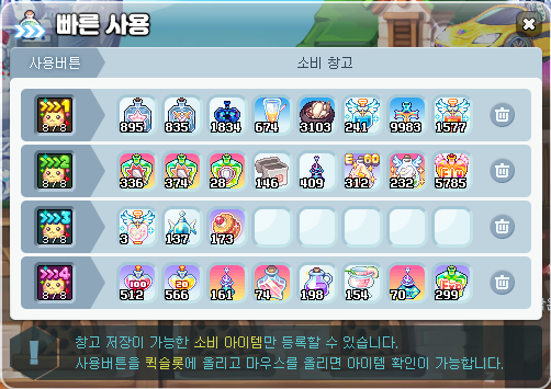 도핑 설명에 앞서, 인벤토리창에 있는 《 빠른 사용 》 기능을 활용하시면 손쉽게