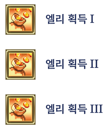 | 길드 (스킬) | [초급] 엘리 획득량 | ![]() | 30% | 길드 마스터가 해당 스킬을 습득 |