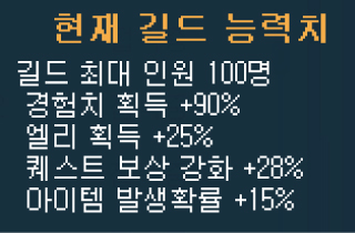 | 길드 (능력치) | 길드 Lv20 이상 능력치 | ![]() | 15% | 길드 레벨 20이상 가입 |