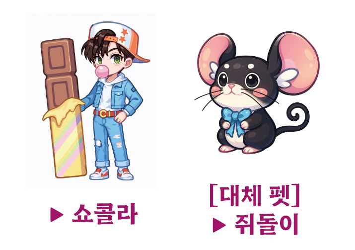 | 쇼콜라 [ 아이템 발생 확률 타입 C ] | ![]() | 쇼콜라 : 10% 쥐돌이 : 6% | 쇼콜라 : 다양한 애완동물 교환권 [ 각종 교환권 교환목록 보러가기 ] 경매장 구매 쥐돌이 : 캐쉬샵 | |
