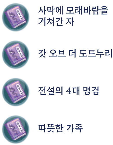 | 타이틀 도감 (오른쪽 효과 모두 적용 가능) | ![]() | 【사막에 모래바람을 거쳐간 자】 : 2% 【 갓 오브 더 도트누리 】 : 5% 【 전설의 4대 명검 】 : 2% 【 따뜻한 가족 】 : 5% | 다양한 타이틀을 통해 타이틀 도감 활성화 [ 타이틀 도감 내실 보러가기 】 |