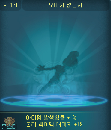 Lv. 171 보이지 않는자![]() | 1 % | 화이트 채플에서 보이지 않는자 사냥 후 도감 활성화 | ||