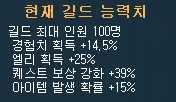 | 길드 (능력치) | 길드 능력치 | ![]() | Lv 별 차등 최대 17.5% | 길드 가입 |