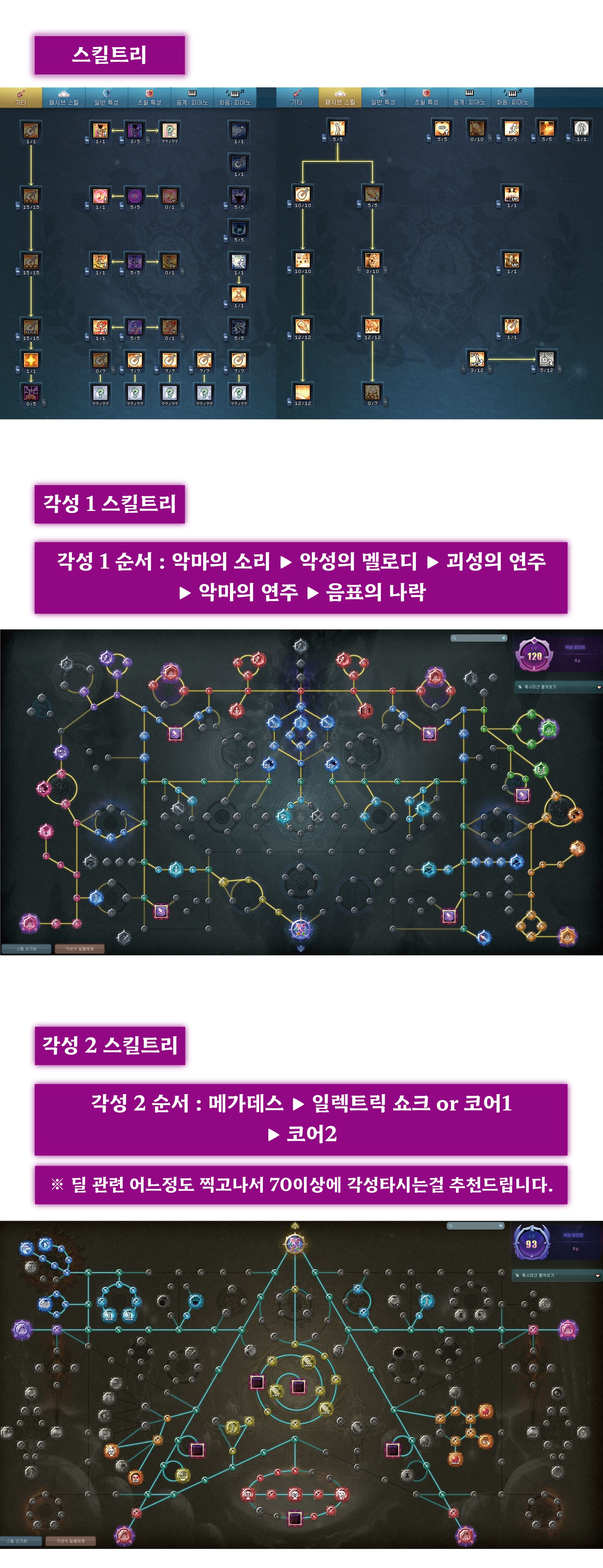 설치기 악마의소리, 악성의 멜로디, 코1 깔고 음표의나락(실드) 코2(직타) 일렉(직타)로 굴려 줍니다.