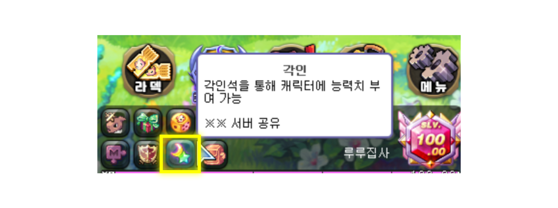 ▶ 각인석 ( 별 , 달 ) 을 사용하여 능력치를 얻을 수 있습니다.
