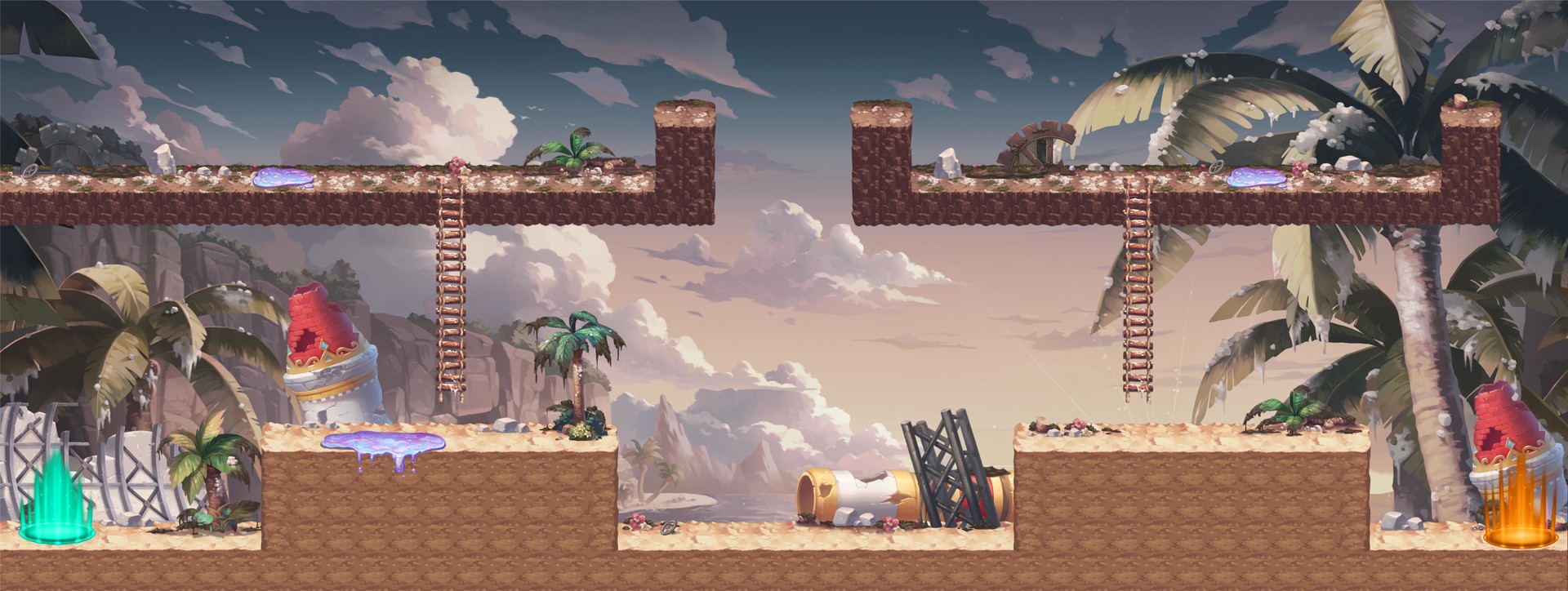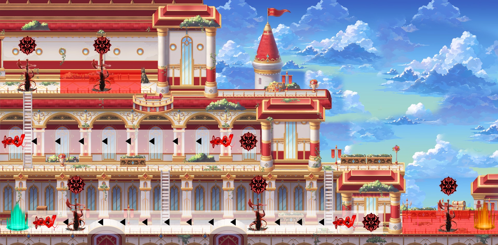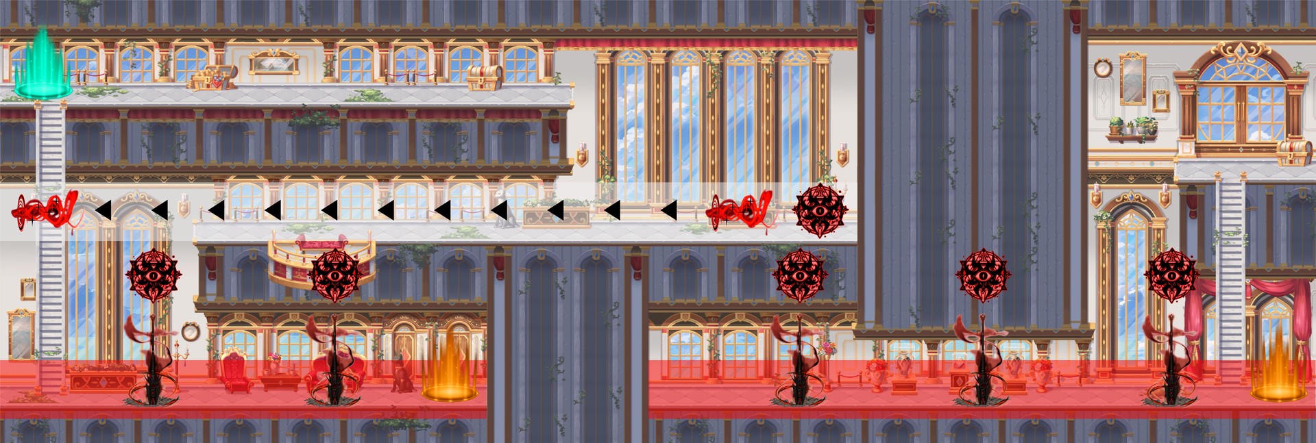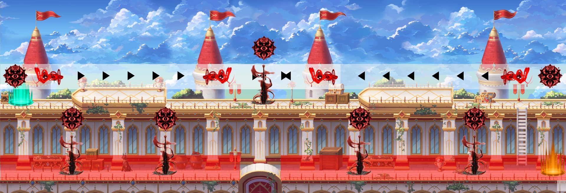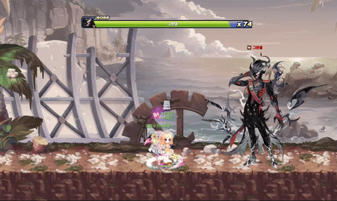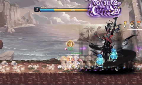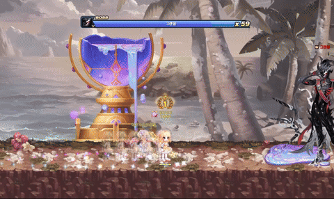 ▶ 맵 전체 가로영역에 세로형 기믹 다수 소환, 4,000만 대미지