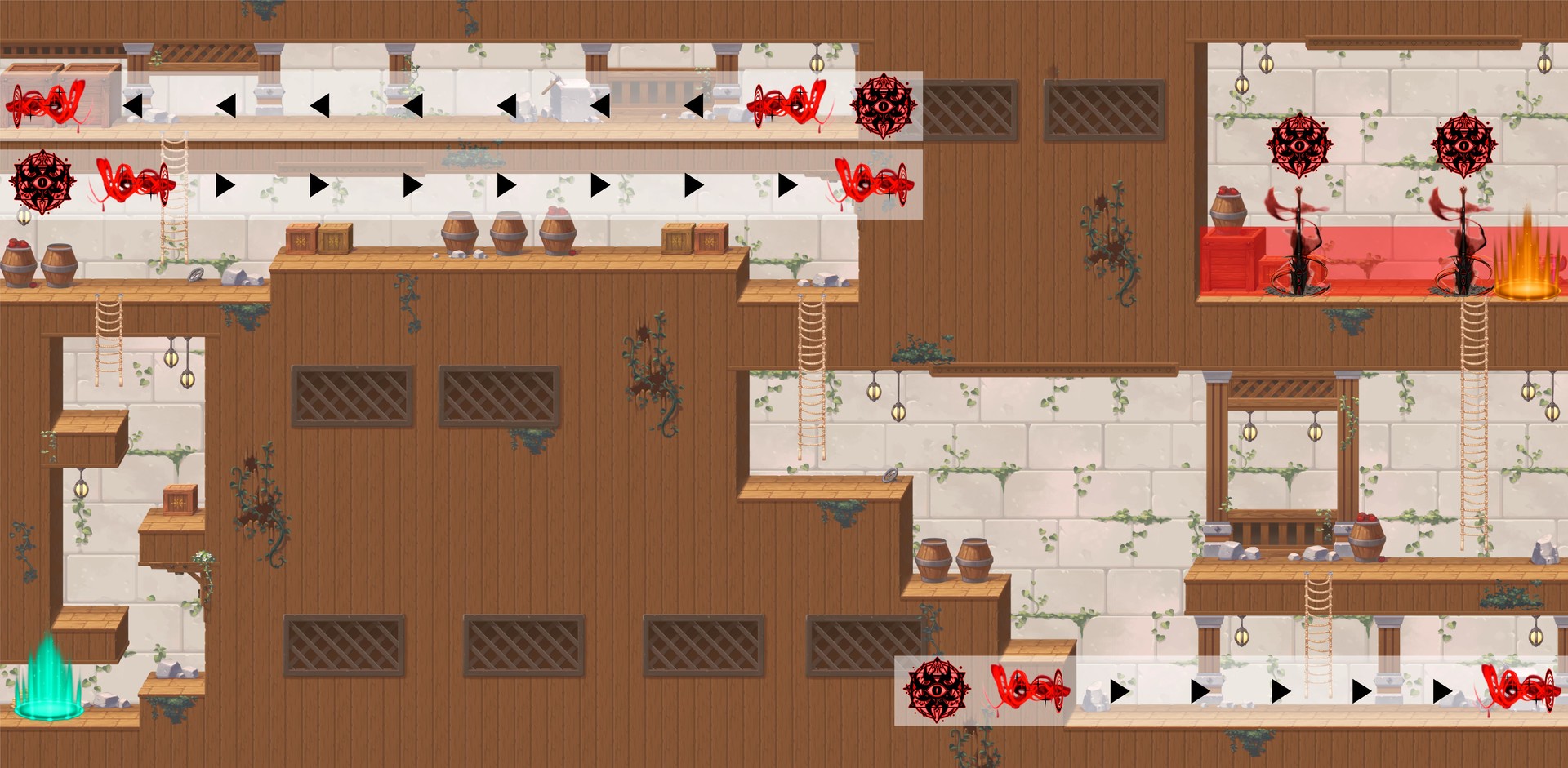 ▶ 랜덤 위치로 등장하는곳은 불투명한 빨간색 박스로 나타냈습니다.
