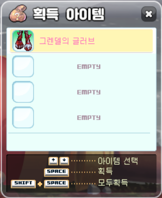 ▶ 방어구 구성은 ( 장갑, 상의, 하의, 신발, 모자 ) 로 구성되어 있습니다.