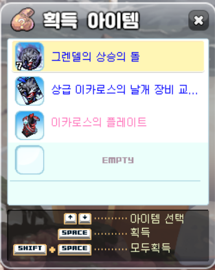 ▶ 상급 이카로스의 날개 장비 교환권이 등장합니다.