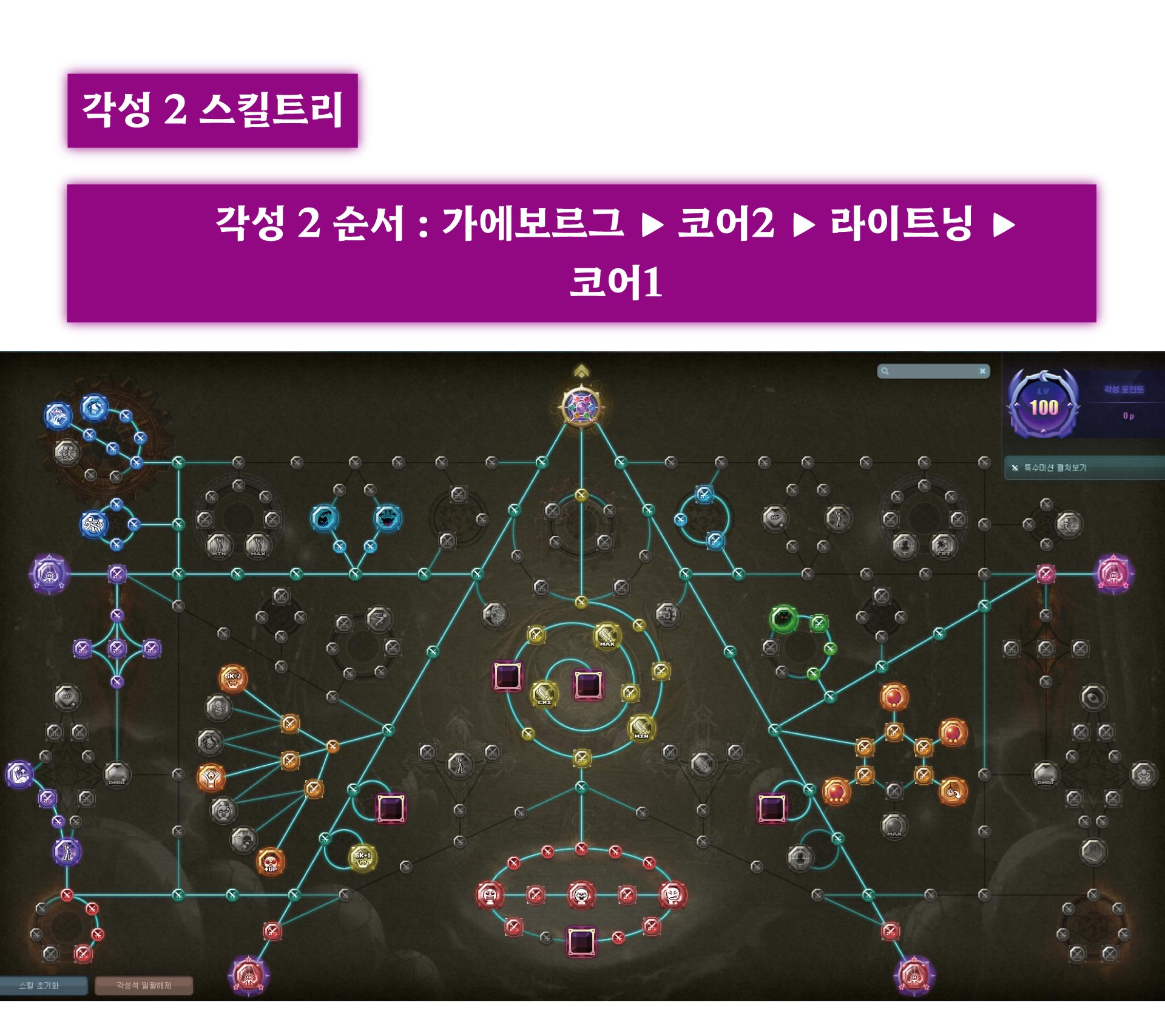 반대로 각성2 이후 활용하게 되는 가에보르그와 라이트닝은 우선순위를 뒤에 두셔도 좋습니다.